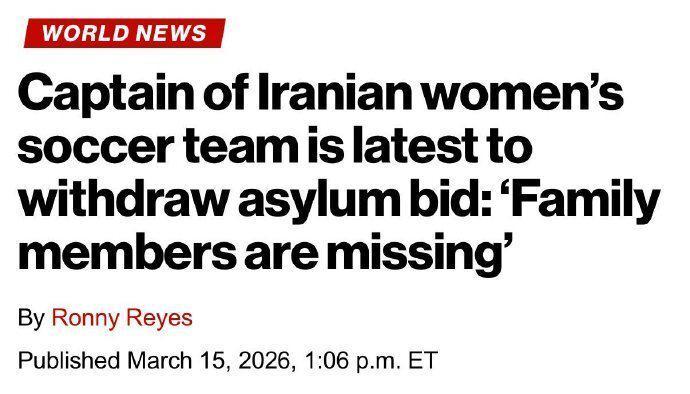 北京时间3月16日,来自伊朗伊通社的最新消息,伊朗女足队长扎赫拉·甘巴里已撤销在澳大利亚的庇护申请,成为代表团中第5名放弃留澳、选择回国的成员。而根据外媒的透露,甘巴里发现家人失踪后做出这样的决定。